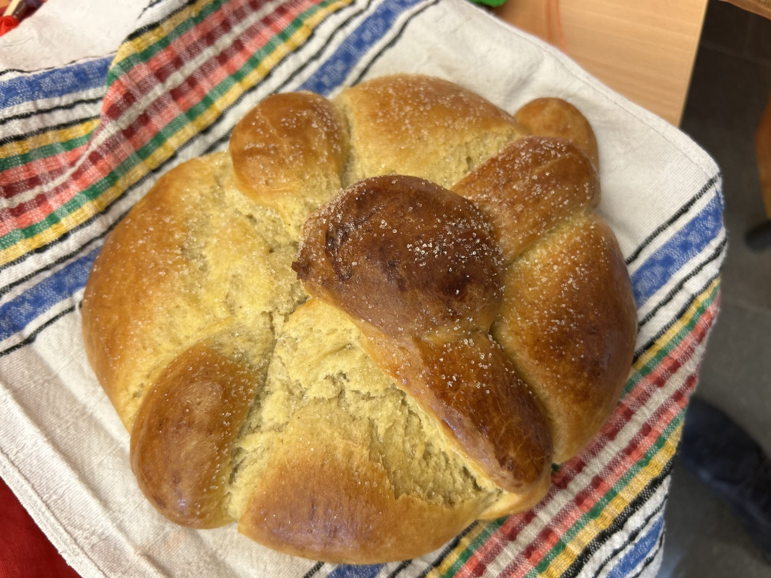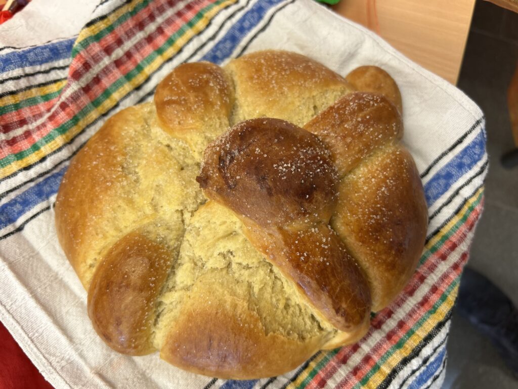 Ein Höhepunkt war das gemeinsame Probieren des Pan de Muerto, einem süßen mexikanischen Hefeteiggebäck, das traditionell zu diesem Anlass gegessen wird. So konnten wir nicht nur die Kultur Mexikos kennenlernen, sondern auch ein Stück davon schmecken.